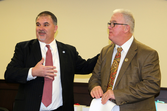 2016-03-07 - Capitol Annex, Frankfort, KY - Photo by Drew Tucker, Campbellsville University. The Heartland Parkway Foundation met with State Senators, Representatives and Transportation Cabinet officials on February 18, 2016, to discuss the merits of the parkway project, encourage additional funding in the current and future legislative sessions, and announce the formation of the new "South Central Kentucky Caucus" within the Kentucky General Assembly. Above, Rep. John "Bam" Carney and Rep. Terry Mills announce the formation of the South Central Kentucky Caucus. - Drew Tucker, CU