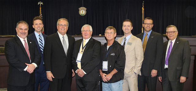 2016-03-07 - Capitol Annex, Frankfort, KY - Photo Drew Tucker, CU. Those representing Washington County for the Heartland Foundation Board are, from left: Wendell Lawrence, executive director of Lincoln Trail Area Development District; John Settles, Washington County judge-executive; with Asa Swan, chief of staff for the secretary of the Kentucky Transportation Cabinet. - Drew Tucker