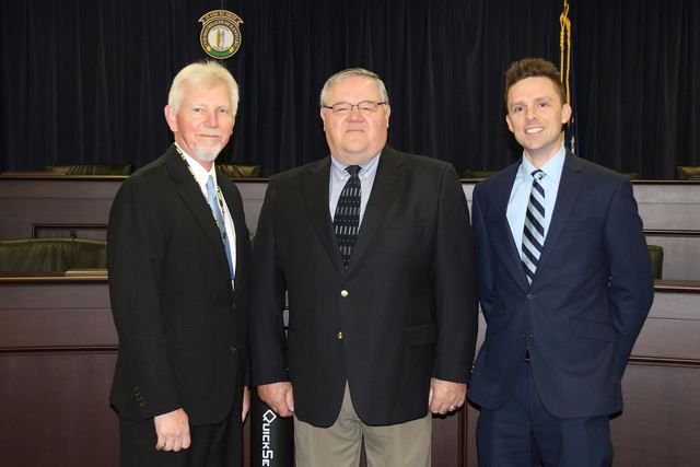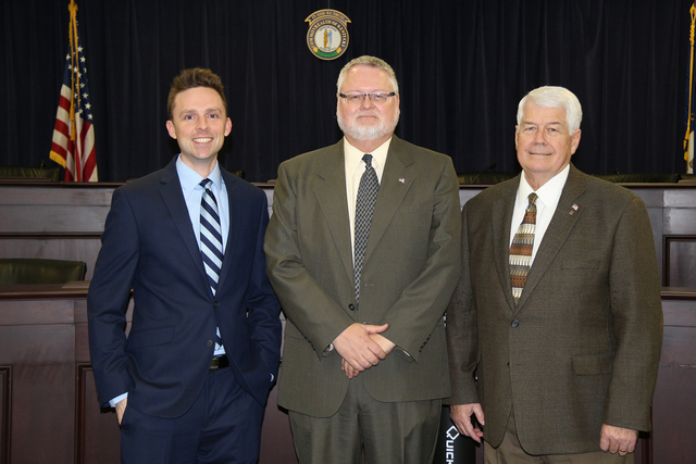 2016-03-07 - Capitol Annex, Frankfort, KY - Photo by Drew Tucker, Campbellsville University. Those representing Marion County for the Heartland Foundation Board with, left, Asa Swan, chief of staff for the secretary of the Kentucky Transportation Cabinet; are Greg Gribbins, Marion County Chamber of Commerce executive director; and John Thomas, foundation treasurer and Lebanon City administrator. - Drew Tucker, CU