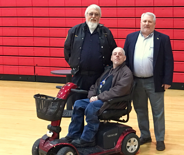 2016-03-05 - ACHS 526 Indian Drive, Columbia, KY - Photo by Ed Waggener, CM photo. Adair County Republican Party Chair Shannon Rowe, seated, with, standing from left, Joe Collins and Ricky Collins, all of whom were getting ready over an hour and one-half before the caucuses were to begin today. The Republican Presidential Caucuses will be held today from 10am-4pm local time. Rowe said that results will not be available until some time after 6pmCT/7pmET. Voting totals will all go to the Republican Party of Kentucky (RPK) in Frankfort, KY, for official tabulations, he said.
