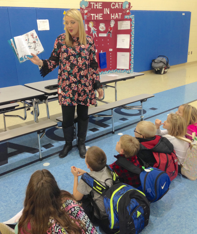 Students gathered around and listened closely as Abby Biddle read Horton Hears A Who!
