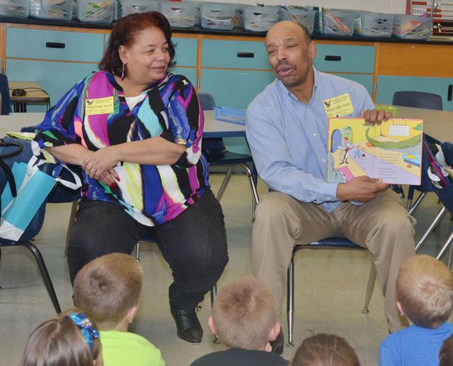 James and Pam Buford read to Campbellsville Elementary School first-graders. - Calen McKinney