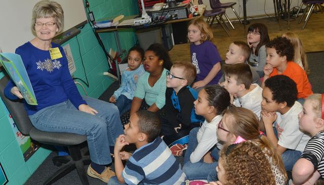Bonnie Webster reads to Campbellsville Elementary School second-grade students. - Calen McKinney