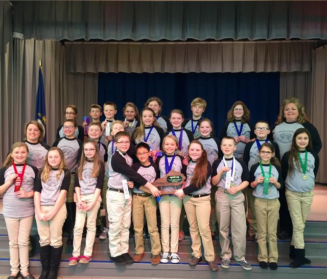 The Adair County Elementary School A-Teams won first places in both Future Problem Solving and Quick Recall in the 2016 District Governor's Cup competition. Front row: Kami Pike, Kiana McHolan, Luke Rich, William Rowe, Gracelynn Akin, Mirah Murphy, Grant Feese, Madison Irvin, Angelina Firkins