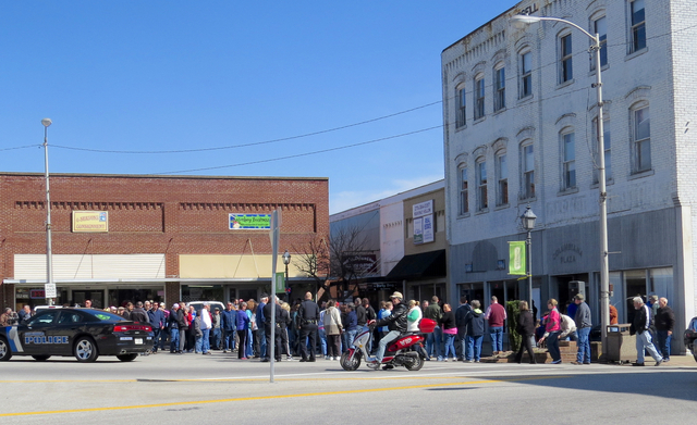 2016-02-27 - 300 Quadrant, Public Square Columbia, KY - Photo by Ed Waggener. The Adair Family Values 'Prayer on the Square' group had not reached it's largest number when the photo was taken shortly after noon, Saturday, February 27, 2016 at just after the announced start if the meeting, which was originally announced to be held across the Square in front of the Adair Annex. The crowd was variously estimated at from just under 100 to around 200. The service lasted about one hour. Adair Family Values is a group Advocating a No vote in the March 22, 2016 Wet/Dry Vote.