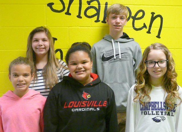 They are fourth-grader Arisha Francis, fifth-grader Alissa Lofton, sixth-grader Rylee Petett, seventh-grader Arren Hash and eighth-grader Shelby Hunt. From left are Arisha Francis, Shelby Hunt, Alissa Lofton, Arren Hash and Rylee Petett.