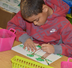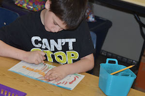 2016-02-18 - Campbellsville Elementary School, 315 Roberts Road (campus), Campbellsville, KY - Photo by Calen McKinney, Public Information Officer, CIS. CES second-grader Bryson Groves colors his rainforest. - Calen McKinney, CIS