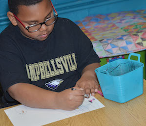 CES second-grader Malikiah Spurling colors his rainforest scene. - Calen McKinney, CIS