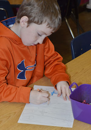 CES second-grader Blatyn Cooper colors his rainforest scene. - Calen McKinney, CIS