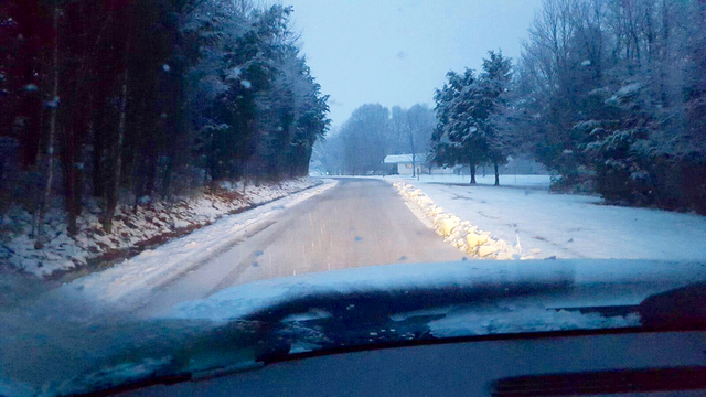 Little Cake Road was a slushy mess at 6:20pmCT, and a big reason why Adair County School District Transportation Director David Jones and Superintendent Alan Reed may the decision to call off school, after all. There will be No School, Wed, 17 Feb 2016. - CM