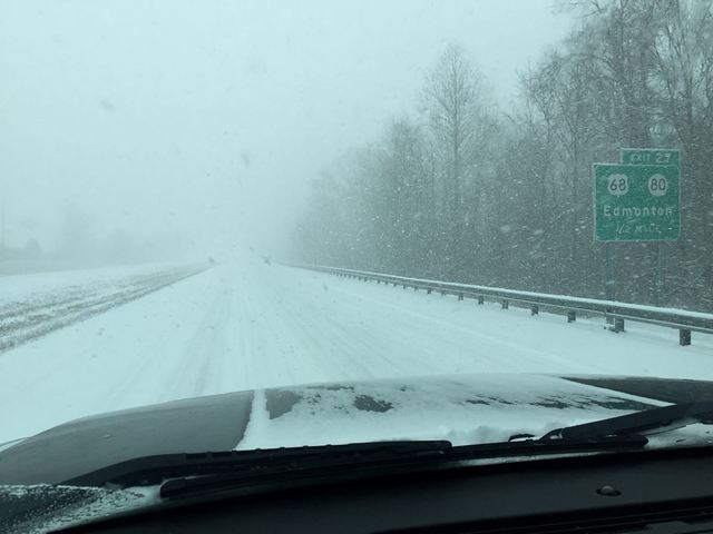 2016-02-14 - Louie B. Nunn/Cumberland Parkway - Photo By Jane Todd Marcum. This was the condition of the Louie B. Nunn / Cumberland Parkway early this afternoon. It is continuing to snow in the area and emergency services are asking that people avoid being on the road if at all possible.