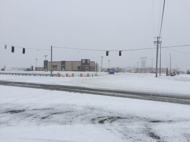 2016-02-14 - KY 61 S of Columbia at Edmonton Road - Photo by Miss Victoria Browning Pike, Greater Bliss, KY. (1:30pmCT/Sun 14 Feb 2016) - Snow coming down hard in Greater Bliss/New Columbia, with one lane already cleared. I am headed inside the manor house until further notice and so are the girls. - Vicky Pike, Big Boss, Miss Victoria's Pamper Angus & Crochety Charolais Coyote Fighter Ranch.