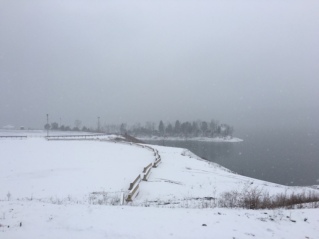 Snow from Wolf Creek Dam Fri 12 Feb 2016