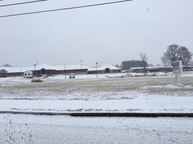 Russell County School along snowy U.S. 127