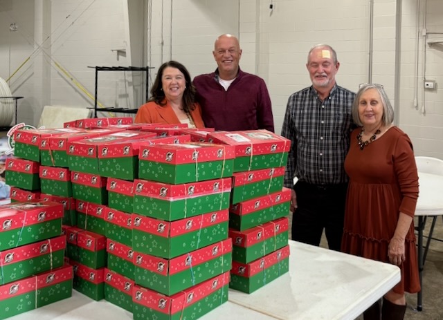 Doug and Debbie Cowan and Clifton and RoseMary Bennett dropped off these wonderful boxes packed by Purdy Separate Baptist Church.