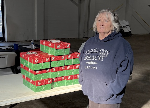 Delaine Corbin dropped off boxes that were packed by Little Cake Christian Church.