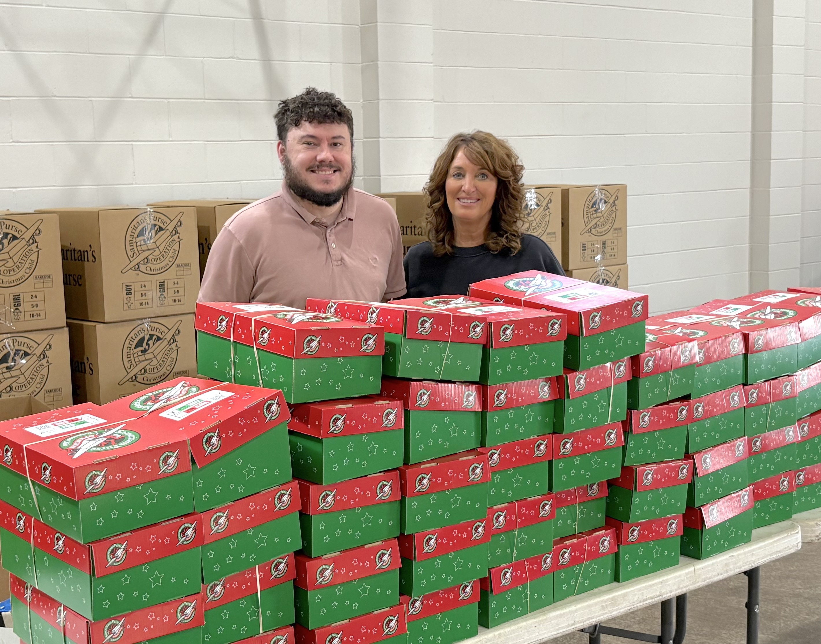 Clay Turner and Jenny Myers dropped off boxes that were packed by the Columbia Christian Church.