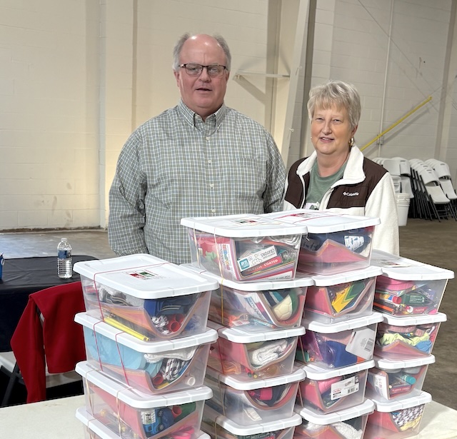 The Hayes Chapel Church delivered these beautiful plastic boxes Sunday afternoon to the drop-off center. Pictured with the boxes are Brian and Julie Campbell.