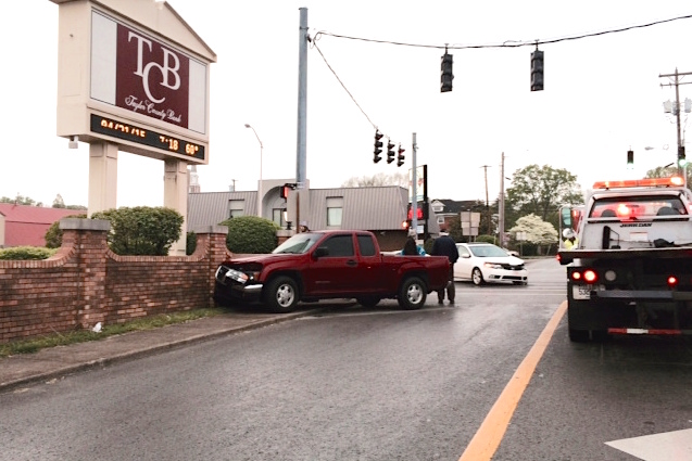 2015-04-22 - Downtown Campbellsville, KY - Photo by Larry Smith, FM 92.7 the WAVE & FM 99.9 the Big Dawg. A two vehicle collision occurred at around 7pmET, Tuesday, April 21, 2015, at the intersection of the Campbellsville Bypass and Lebanon Avenue. The Campbellsville Police Department and the Campbellsville-Taylor County EMS were at the scene. - LARRY SMITH, Operations Manager, Shoreline Communications.