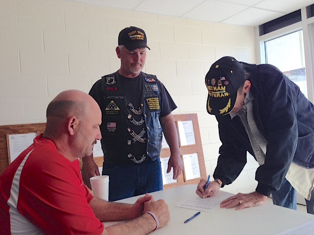 2015-04-15 - Kentucky National Guard Armory, 1503 E. Broadway, Campbellsville, KY, - Photo from Chester Whittington. Chester Whittington facing camera, reports that over 100 veterans and supporters signed the petition for a local VA clinic in the area. "We were really encouraged by the turnout," he said, "We be doing more around the area." The photo was taken Saturday, April 11, 2015.