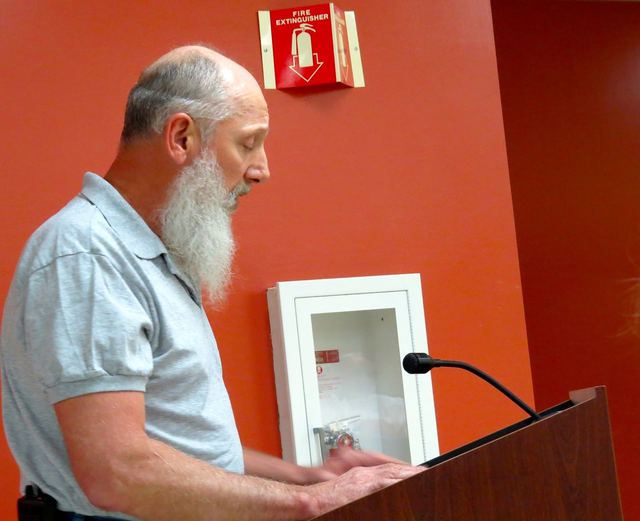 2015-04-15 - Adair Annex, 424 Public Square, Columbia, KY - Photo by Ed Waggener. Knifley Area Fire Department Chief C.R. Drake read from prepared notes as the lead-off presenter requesting that Fire Dues be included on tax bills, and cited statutes which permit them to be included. Fiscal Court approved asking County Attorney Jennifer Hutchison Corbin to draft a county ordinance for a 1st Reading, possibly as soon as the regular May 12, 2015 session of Fiscal Court. Breeding Area Fire Department is also requesting the change, which will mean that payment of fire dues will not be a option, but an obligation. Mr. Drake stressed that the dues are "fees," and not a "tax," even though bill would be included on the tax statement.