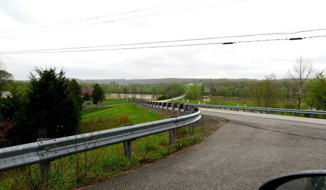 2015-04-15 - Russell Creek, KY 61 at Milltown, Adair Co., KY - Photo by Ed Waggener. "Lakes" came and went in hours during the deluge of 14 Apr 2014. This one was formed on Russell Creek at the Russell Creek Bridge near Milltown, KY. At the time photo was taken, Milltown Road in downtown Milltown was already fordable.