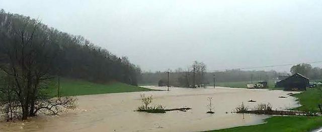 Junior Stotts says that Butler Creek was the highest it's been since he bought this farm in the 1990s. The farm is a familiar landmark in the community.