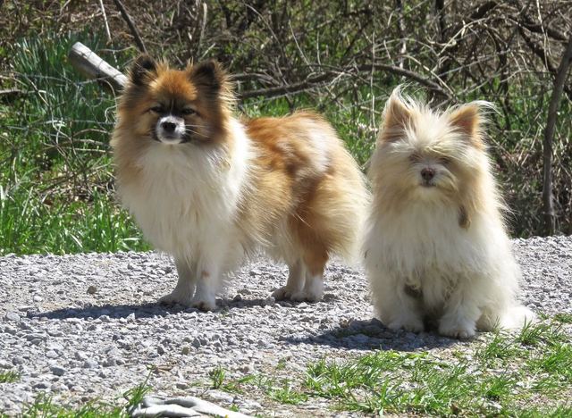 2015-04-13 - Photo by Linda Waggener, CM photo. These two were handling docent duties as we made a know-your-counties-better tour recently. They greeted, told us what we could do and not do around their jurisdiction. They were firm enough that we did acceded to all their wishes, and enjoyed the visit. It would be great if we possessed their very friendly manner which made us want to come back. Such soft skills! Wanted to ask their breed, but would have been getting more familiar than we had earned the right to be. Oh yeah, after the introduction, they guarded our car while we went for a walk on their CR lane. - Ed & Linda