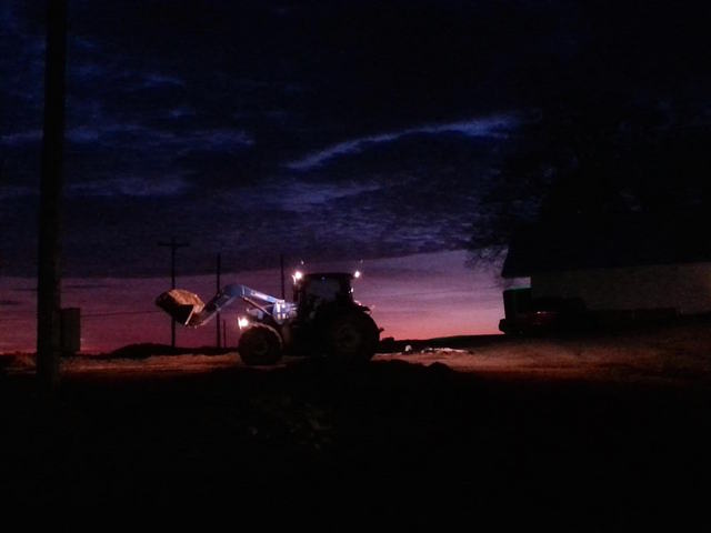 2015-04-12 - Rowe Farms, 909 Keltner Road, Columbia, KY - Photo by Fred Rowe. At 5:40amCT, 12 Apr 2015, before any work is done, daily chores - fixing breakfast among them - are underway at Rowe Farms. This capture was on the Fred Rowe's Samsung cell phone, a vital tool in managing the herd.