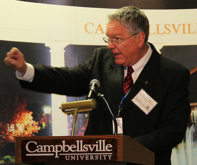 2015-04-02 - Campbellsville, KY - Photo by Drew Tucker, Campbellsville University. Dr. Keith Spears, vice president for graduate and professional studies, announced that WLCU-TV will go digital in May 2015, expanding into thousands of homes.