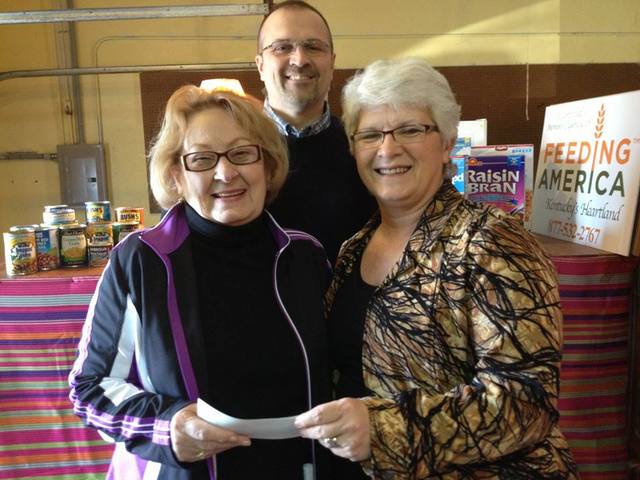 2015-03-30 - Columbia, KY - Photo By Melissa Burton-Harden. First & Farmers National Bank in Columbia recently presented a monetary donation of $500 along with several non-perishable food items to the Adair County Food Pantry. In the photo above are, front, Cynthia Rowe, left of the Adair Food Pantry; and Marsha Bennett, right, and Stacy Popplewell, both employees of bank. The bank made $500 donation. Along with that, employees and customers contributed canned goods. Together, we can make a difference! The Adair County Food Pantry, 203 South Monroe Street, Columbia, KY, and is open from 9am-12pm each Tuesday serving Adair County families who meet certain income criteria. Anyone who wishes to donate canned items or make a monetary donation may call Food Pantry Director Stephanie Long at 270-250-2847. Melissa Burton-Harden