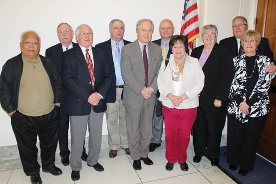 2015-03-25 - Rep. Ed Whitfield office, Washington, DC - Photo from Robert Hankins, communications, Rep. Ed Whitfield . Whitfield Meets with Lake Cumberland Area Development District - U.S. Rep. Ed Whitfield (KY-01), Chairman of the House Subcommittee on Energy and Power, met in his Washington office today with representatives of the Lake Cumberland Area Development District. Above, from left, Ron Diaz, Columbia Mayor Curtis Hardwick, Taylor County Judge Executive Eddie Rogers, Albany Mayor Nicky Smith, (Rep. Whitfield), Casey County Judge Executive Randy Dial, Becky Smith, LCADD citizen board member of Albany, KY; Donna Diaz, LCADD Executive Director; Eddie Wesley, Casey County citizen board member and his wife, Deborah Smith. - Clarissa Hart, LCADD, Russell Springs, KY