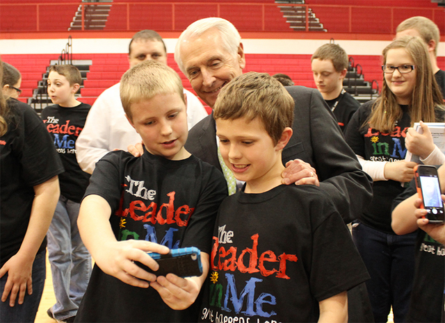 2015-03-22 - Adair County High School, 526 Indian Drive, Columbia KY - Photo by Shamarie Claiborne, Adair Co. School District. Gov. Steve Beshear joined Austin and Tyler Meacham for a photograph during his visit to Adair County High School on Thursday, March 19, 2015.