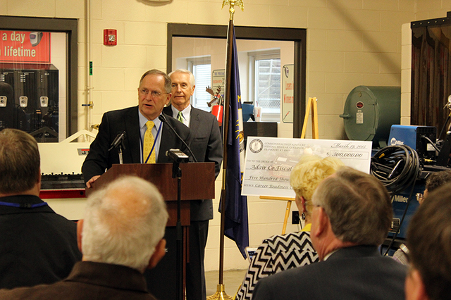 2015-03-21 - Adair County High School, 526 Indian Drive, Columbia KY - Photo by Shamarie Claiborne, Adair Co. School District . Supt. Alan Reed welcomed Governor Steve Beshear to the Career Tech Center, especially to see the welding and health career paths being showcased. Behind the scenes, before the official program, Supt. Reed said he was pleased that the Governor had commended him for the campus' easy navigation. "Some of the first words spoken to me by Governor Beshear today were, 'I really appreciate those large numbers on your buildings.' Supt. Reed said, "I told him we had spent considerable time and effort on the project and that we receive positive comments nearly every day. The governor’s comments mirrored the many positive comments we have received from community members and visitors alike. There is no reason to park at the wrong building on this campus!"