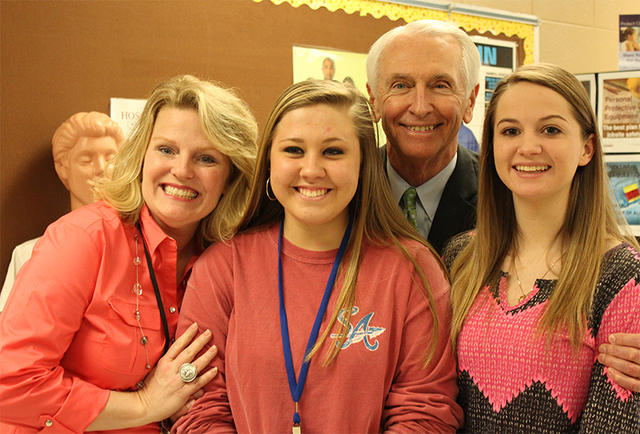 2015-03-20 - Adair County High School, 526 Indian Drive, Columbia KY - Photo by Shamarie Claiborne, Adair County School District. Mrs. Carter, Kassidy Roy, and Michaela Walker posing with the Governor. Evident, throughout the visit, was that this Governor loves kids, a passion he shares with his wife, Jane Beshear, a teacher.