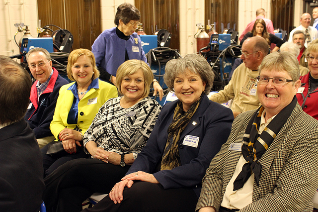 2015-03-19 - 526 Indian Drive, Columbia, KY - Photo by Shamarie Claiborne, Adair County School District. A long row of Columbia/Adair County Chamber of Commerce officials were among the invited guests of CJE Mike Stephens and Deputy CJE Holly Grimsley for Governor Steve Beshear's visit to the Career Technical Center. From left, former President Roger Meadows, President Brenda Mann, Directors Lee Ann Collins and Ann Martin, and Vice President Ellen Zornes. Immediately behind them were Shirley Grider and Orvis Grider.