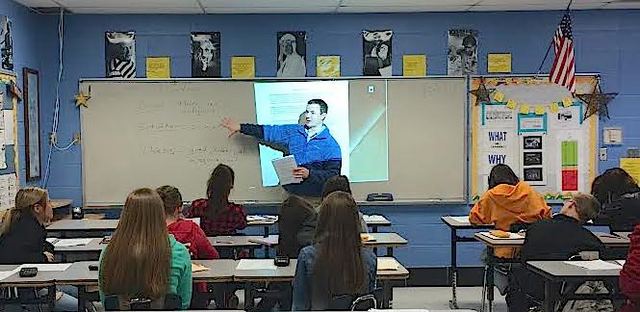 Kyle Ballou, English Teacher works with Math Class at ACHS