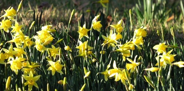 The 2015 Daffodil watch has paid off with this fine crop just blossoming out in the churchyard of New Zion Baptist Church on KY 704 - Fairplay Road. - LW