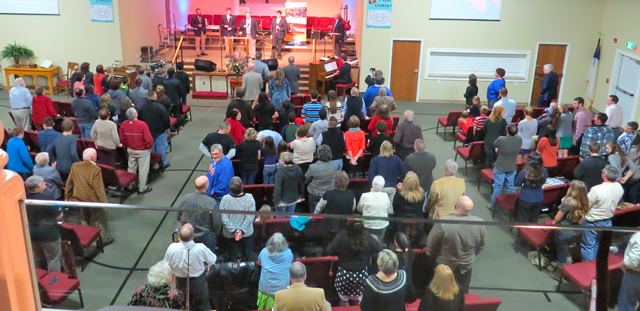 2015-03-06 - Junction City, KY - Photo by Linda Waggener, Campbellsville University Communications. CU Sound, a group of Campbellsville University students and graduates, sing to those in attendance at Junction City First Baptist Church on A Day of Kingdom Advance Sunday.