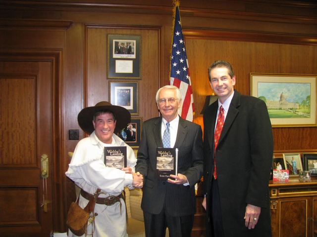 2015-03-02 - 155 Blue Raider Drive, Columbia, KY - Photo from author Eddie Price. Eddie Price, holding a copy of his book, "Widder's Landing" will be at W.W. Slider Recital Center, 155 Blue Raider Drive, Columbia, KY, tonight Monday, March 3, 2015 at 7pmCT, is shown above with Kentucky Governor Steve Beshear and Acclaim Press President Keith Steele.