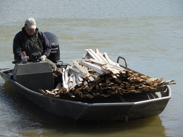 2015-03-02 - Taylor Co., KY - Photo by Lawrence Hamilton. Lawrence writes, "The KY Dept. of Fish and Wildlife were busy on Monday, March 2, 2015. They battled cold and ice while creating stake beds for all of us Fisherpersons at Ramp 1, Greenriver Lake. Thank you guys for your hard work."