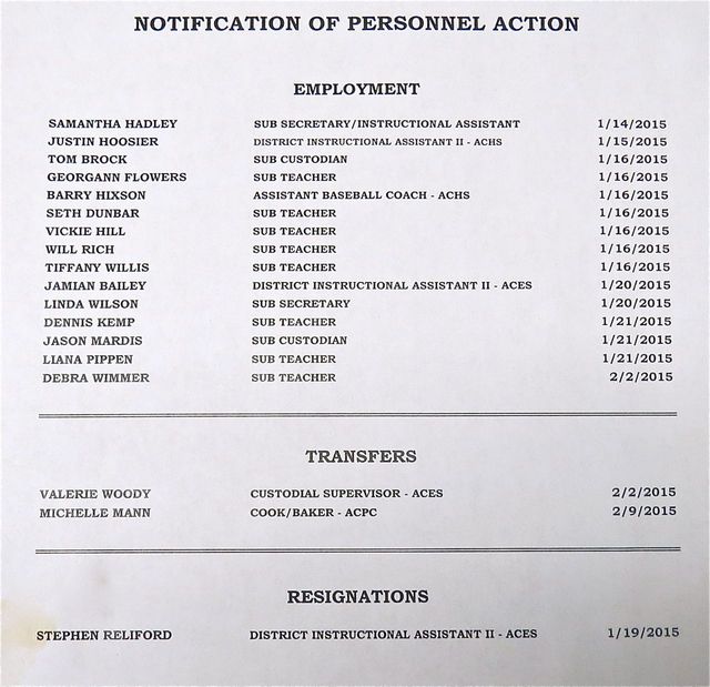 2015-02-24 - 1204 Greensburg Street, Columbia, KY - Photo from Adair County Board of Education. This report of employment changes in the Adair County School District was presented at the Board's Special Regular meeting, Mon 23 Feb 2015.