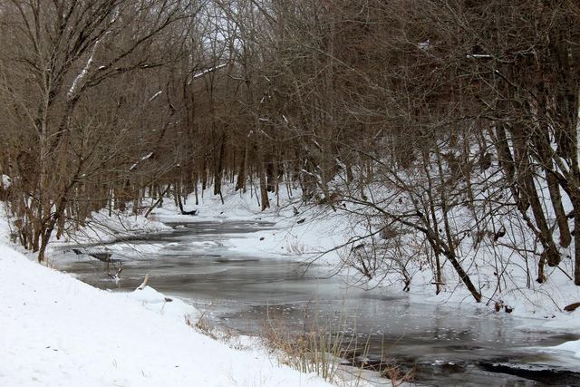 When the ice began to thaw the frozen creek began to break up into chunks of ice, just looking like an orderly runoff had begun.