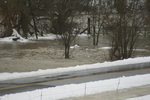 2015-02-21 - Casey Creek (Roley), KY - Photo by Frances Salyers. As a result of the Ice Jam Dam, water back up, creating flood over a wide area.