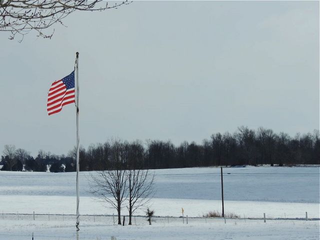 God's Decoration: U.S. Flag over snow covered Land of Egypt