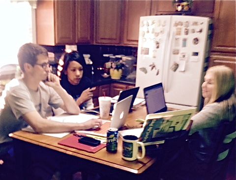 2015-02-19 - Columbia, KY - Photo by Billy Wheat. Hali Wheat, Preslie Lawless and Dustin Lawson doing home work at Hali's home after picking up Preslie who was snowed in at her home and going to class at LWC