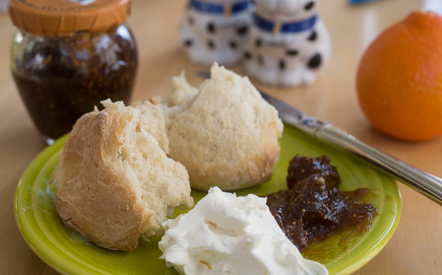 2015-02-19 - Photo by Pen. Fresh baked bread with fig jam and cream cheese.