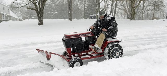 2015-02-17 - Lindsey Wilson College, Columbia, KY - Photo by Duane Bonifer, Lindsey Wilson College. David Begley of the Lindsey Wilson College Physical Plant Division clears the parking lot behind LWC's main athletics office building Monday morning, February, 16, 2015. - DUANE BONIFER
