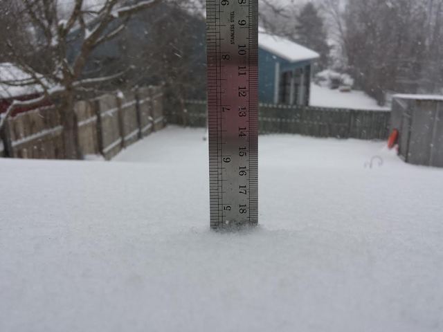 2015-02-16 - Walker Street, Columbia, KY - Photo by Theresa Ingermann. We have about 4 1/2 inches so far on Walker Street in Columbia as of 10amCT, Monday, February 16, 2015. - Chris Ingermann