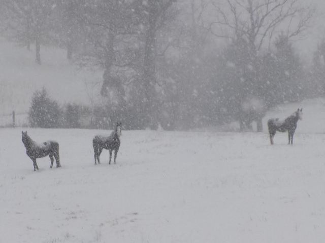 Horses prefer outside in Blizzard of 16 Feb 2015